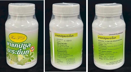 ประกาศสำนักงานคณะกรรมการอาหารและยา เรื่อง ผลการตรวจสอบผลิตภัณฑ์สมุนไพร (แคปซูลมะระขี้นก G 1/54 (พร))